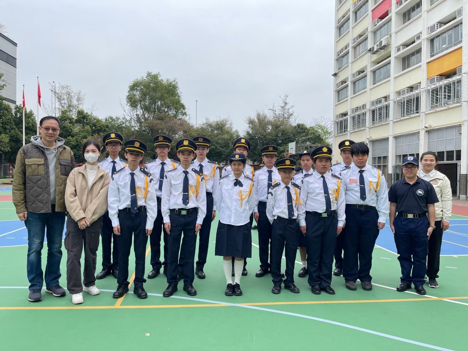 本校升旗隊員於2026年2月7日前往佛教茂峰法師紀念中學,並參加了香港升旗隊總會集中訓練及「基本步操章」考核。隊員分別參加筆試及技能考核。透過活動有助推廣升掛國旗文化,推動國民教育及愛國主義教育,培養青年領袖。各隊員都專注訓練和認真應考,值得欣賞和鼓勵!