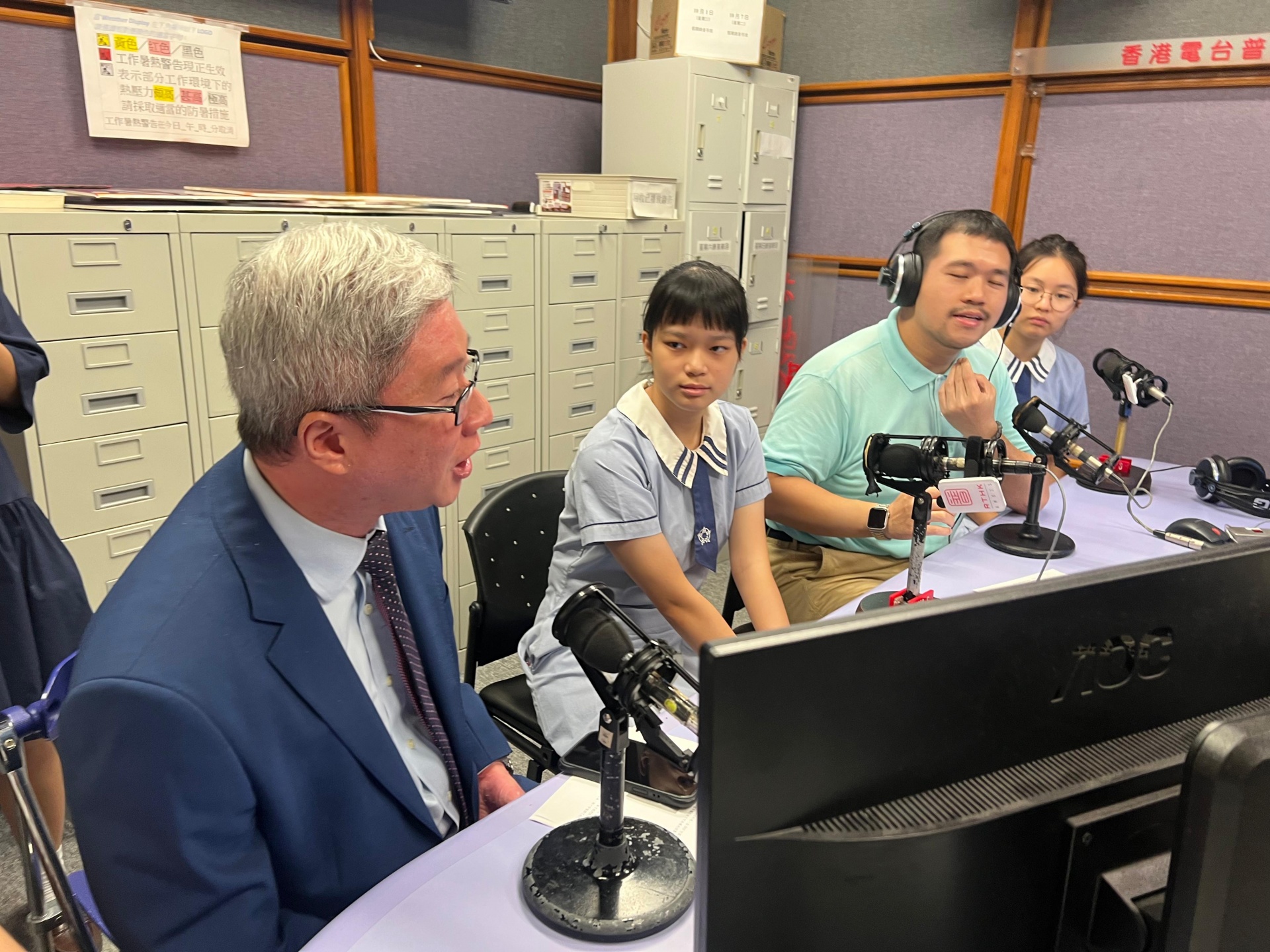 由梅校長、創客教育科老師及化學科老師於10月11日帶領幾位來自不同國籍的中一及中六學生,前往香港電台接受訪問,節目名為「新人類、大世界:STEM總動員」。在訪問中,學生們分享了創客教育科及化學科的跨學科課程——黑水虻全方位學習。此次活動的理念是由高年級同學帶領低年級同學進行活動,旨在促進文化的交流與共享。