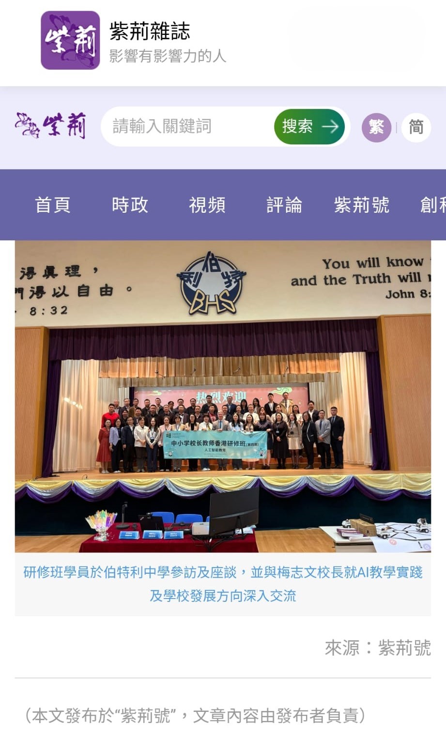本校參與教大與中國教育學會合辦第四期「中小學校長教師香港研修班」獲紫荊雜誌報導