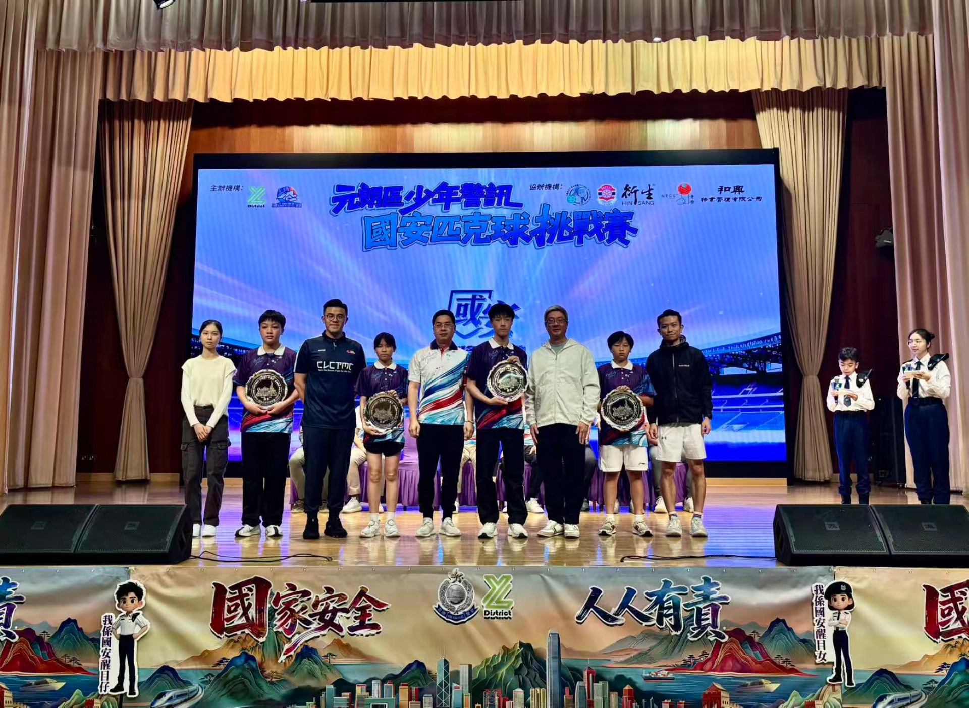 今日四月十五日是「國家安全教育日」,為了重視這個日子,德育組在本週舉辦開「國民教育週」,行一連串教育活動,例如升旗禮、同學國旗下的分享講話、國民教育攤位、中國文化工作坊、專題影片播放、午間專題閱讀等等 。早會時,同學分享國家安全的重要性 。在升旗禮之後,更進行頒獎禮,表揚同學們榮獲匹克球「國安碟」的冠軍及殿軍佳績,特別具有意義。
